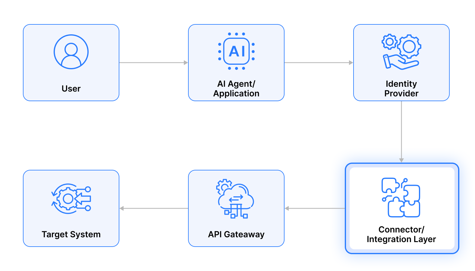The identity decisions in that flow aren't happening at login. They're happening inside connectors, API gateways, and orchestration layers, all places where IAM policy often has limited reach.